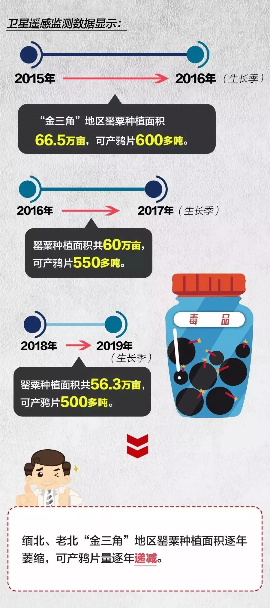 緬甸和老撾北部地區(qū)是傳統(tǒng)的“金三角”毒源地。近年來,緬甸、老撾政府加大相關(guān)地區(qū)的經(jīng)濟(jì)社會(huì)發(fā)展力度,加大禁毒執(zhí)法力度。